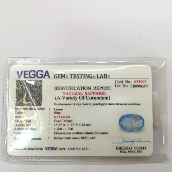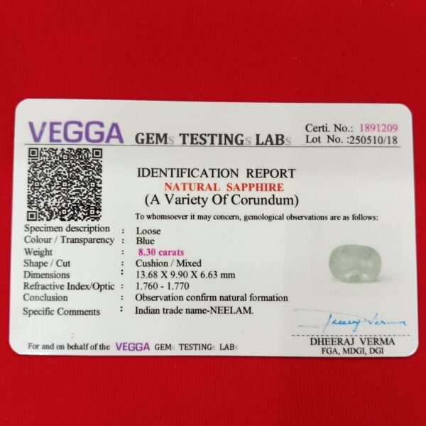 Blue Sapphire 8.17 Carat/ 9 Ratti