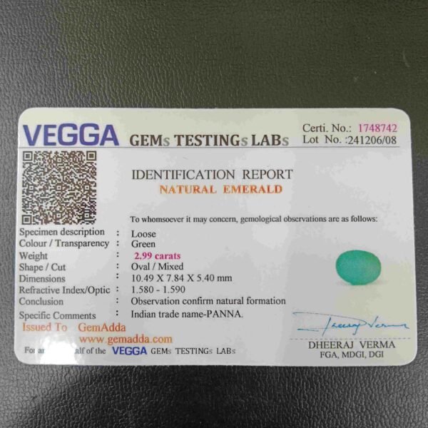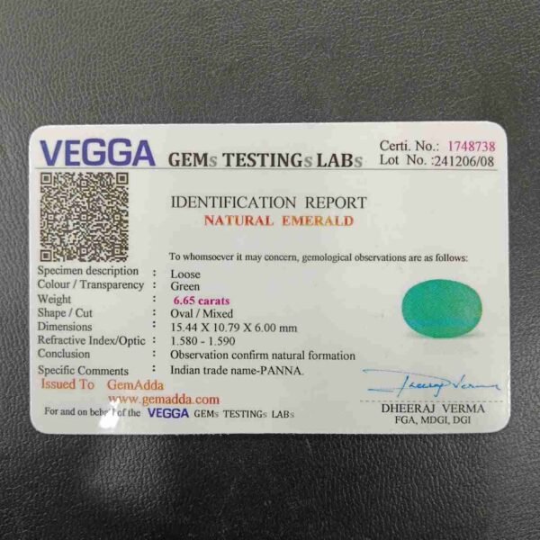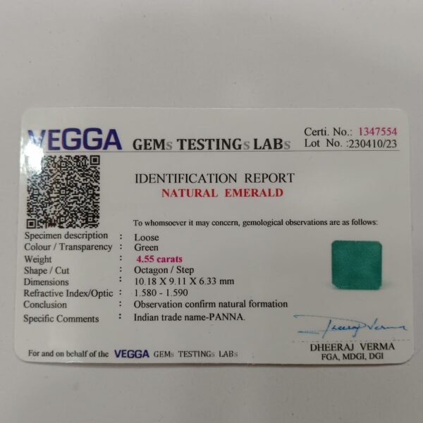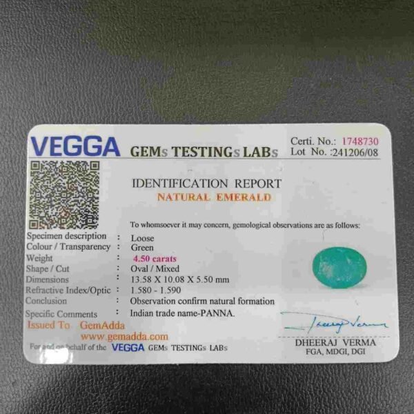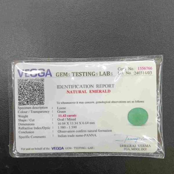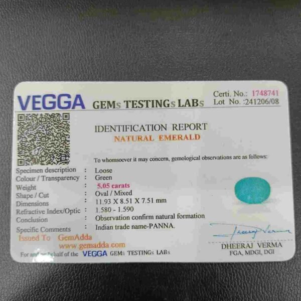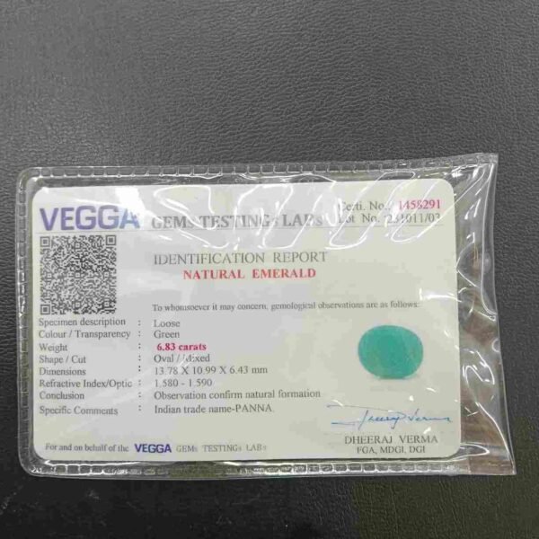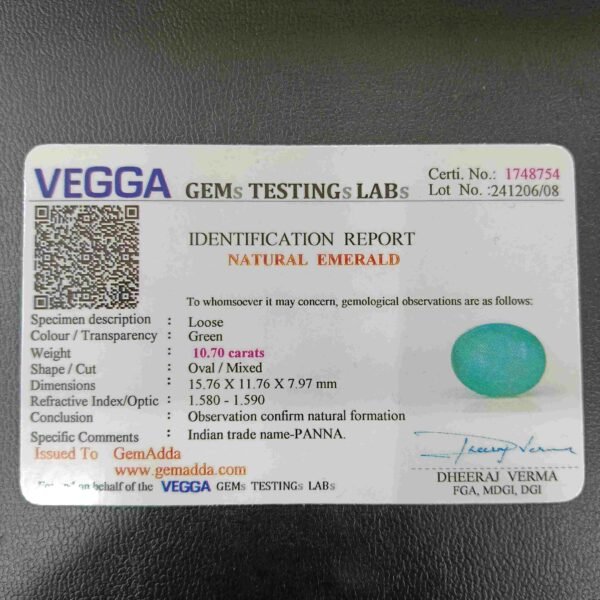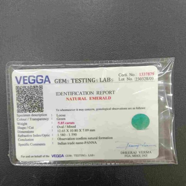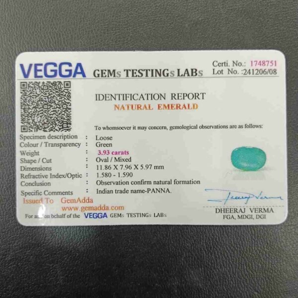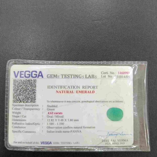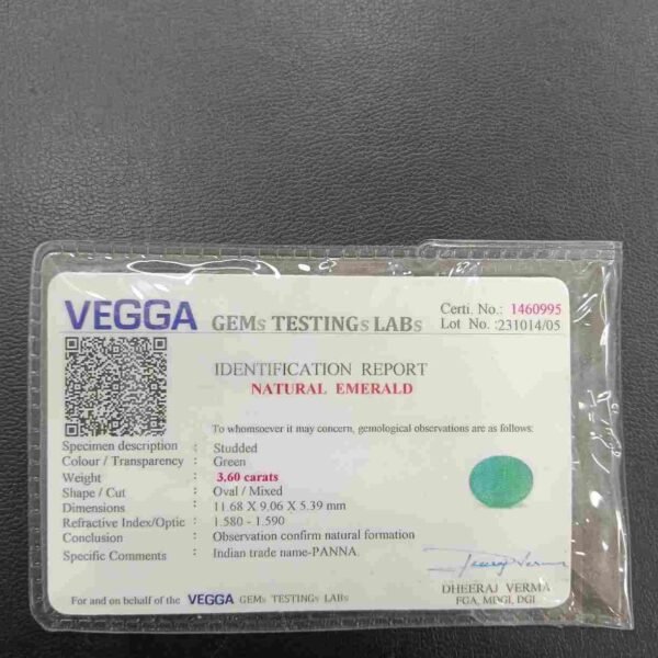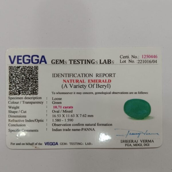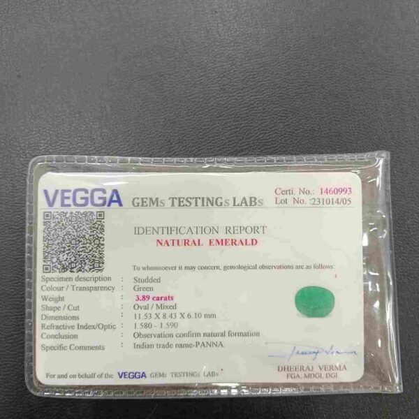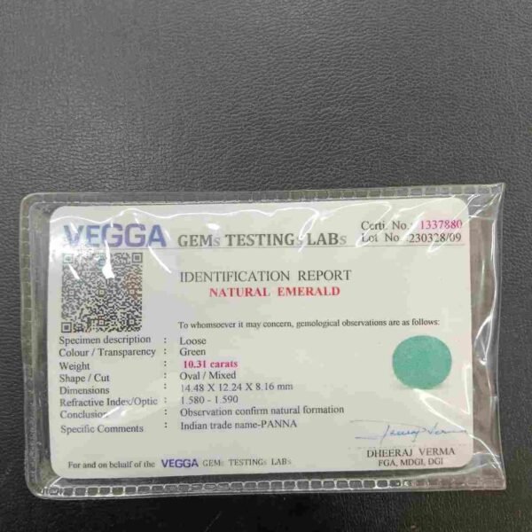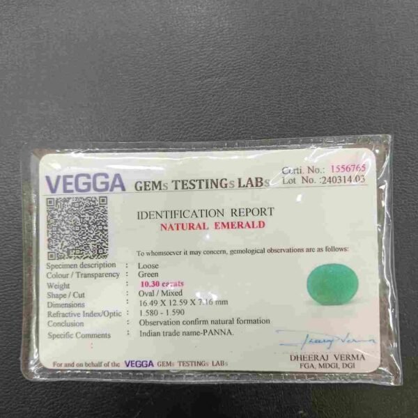 Panna, or emerald, is a green-colored precious gemstone associated with the planet Mercury (Budha). Mercury has positive powers and neutralizes negativity. Wearing it can be beneficial for boosting self-confidence and social status. It is suitable for the Gemini ascendant (Mithun Rashi). Its colors range from light to dark green, bluish-green, and sometimes yellowish-green.