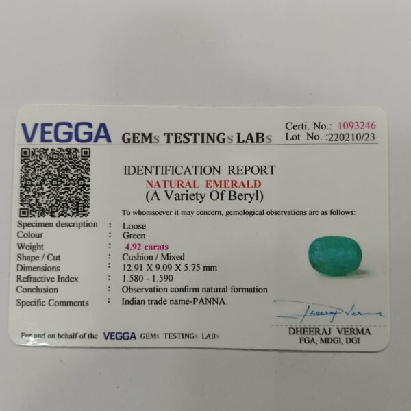 Emerald 4.60 Carat/ 5.00 Ratti