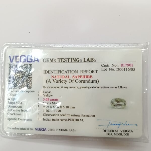Yellow Sapphire 2.99 Carat/ 3.25 Ratti