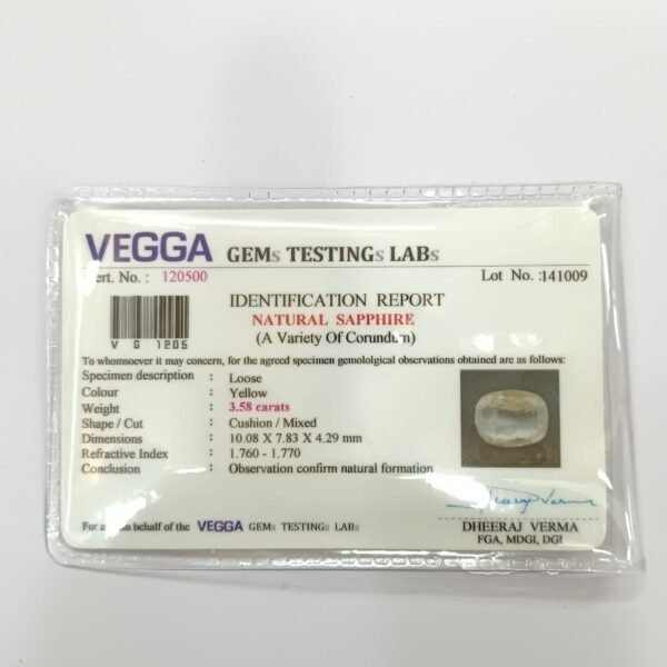 Yellow Sapphire 3.58 Carat/ 3.50 Ratti