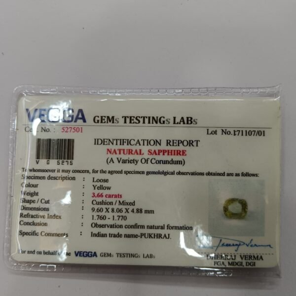 Yellow Sapphire 3.66 Carat/ 4.00 Ratti
