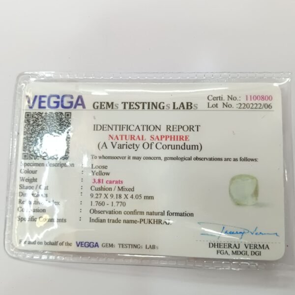 Yellow Sapphire 3.81 Carat/ 4.00 Ratti