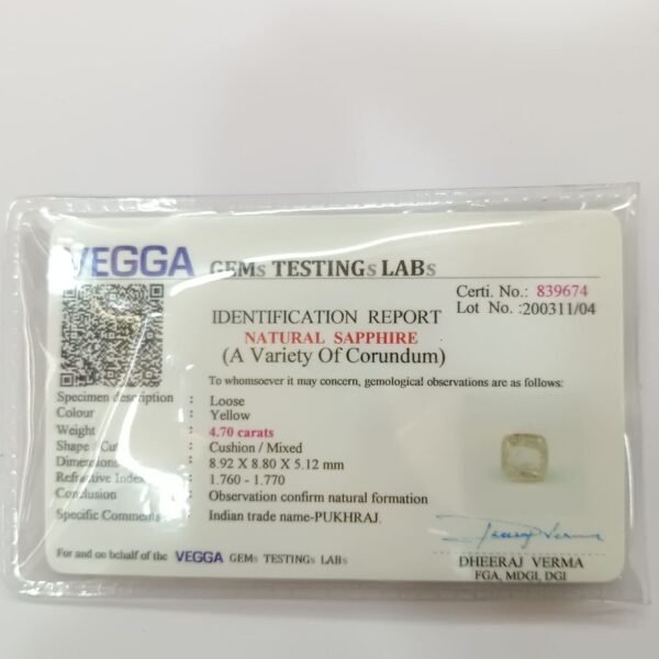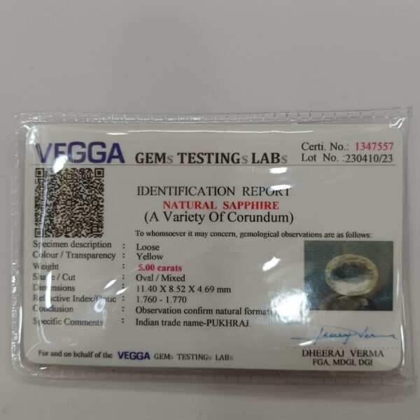 Yellow Sapphire 4.70 Carat/ 5.00 Ratti