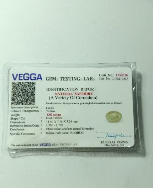 Yellow sapphire, also known as pukhraj, is a yellow-colored precious gemstone associated with the planet Jupiter (Brihaspati). Brihaspati is considered the luckiest planet and brings luck and fortune to the wearer. It helps in mitigating the negative impacts of Brihaspati Graha. Its colors range from light yellow to dark yellow to the tints of orange. Yellow sapphire is a lucky stone for September-born people.