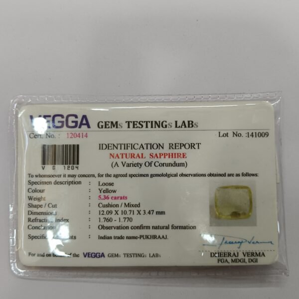 Yellow Sapphire 5.36 Carat/ 5.50 Ratti