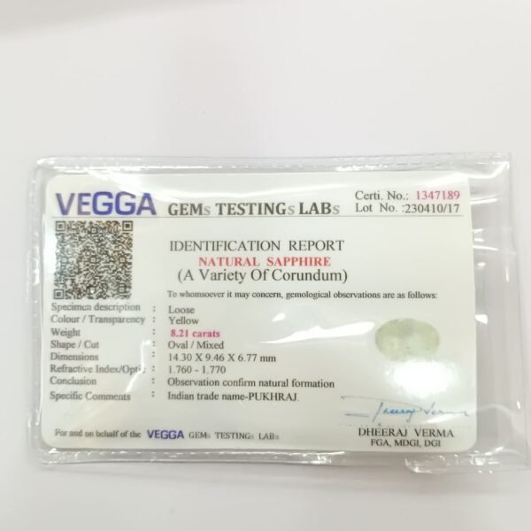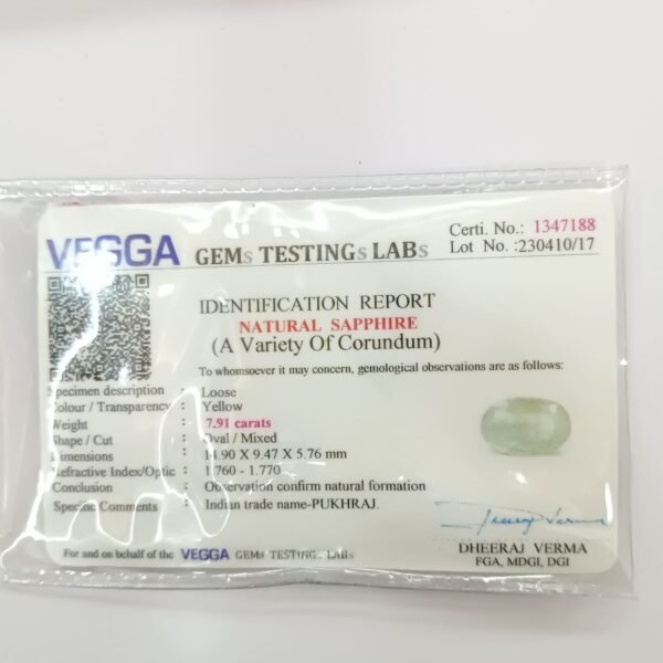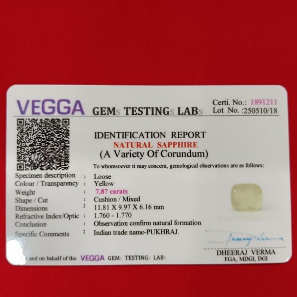 Yellow Sapphire 7.85 Carat/ 8.50 Ratti