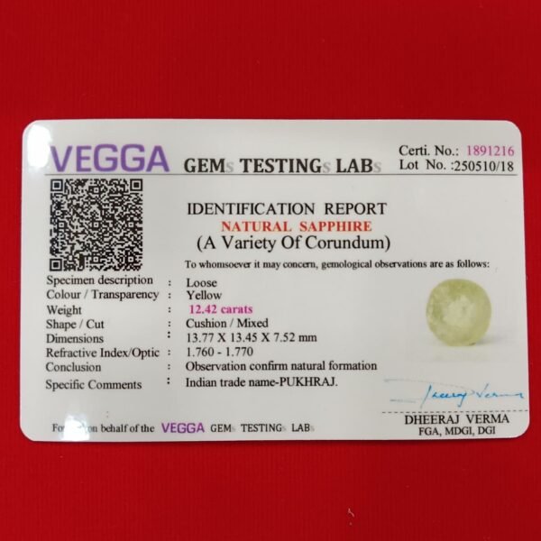 Yellow Sapphire 12.42 Carat/ 13.50 Ratti