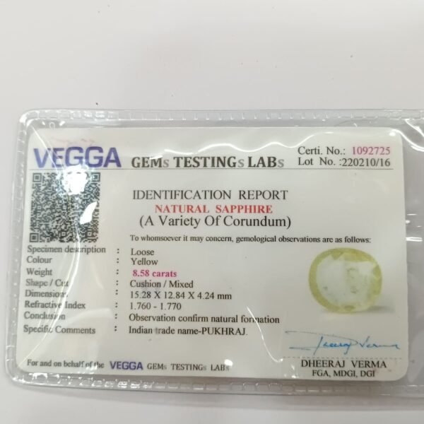 Yellow Sapphire 8.54 Carat/ 9.25 Ratti