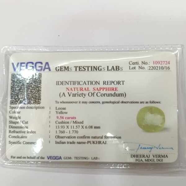 Yellow Sapphire 9.56 Carat/ 10.50 Ratti