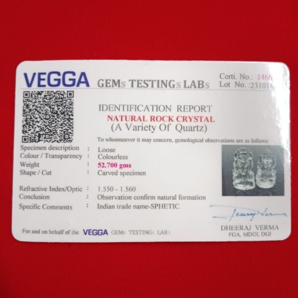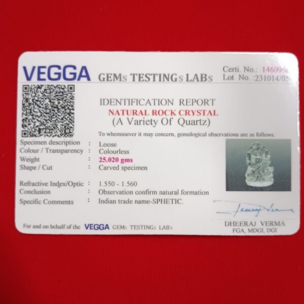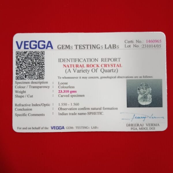| Cut / Shape – Carved Specimen | Color – Colorless |