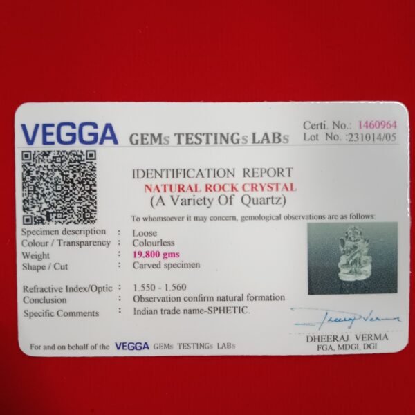 | Cut / Shape – Carved Specimen | Color – Colorless |